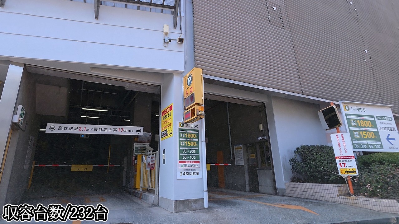 - 補足: 施設公式では駐車台数232台、三井のリパークでは時間貸し収容台数98台と案内されています。