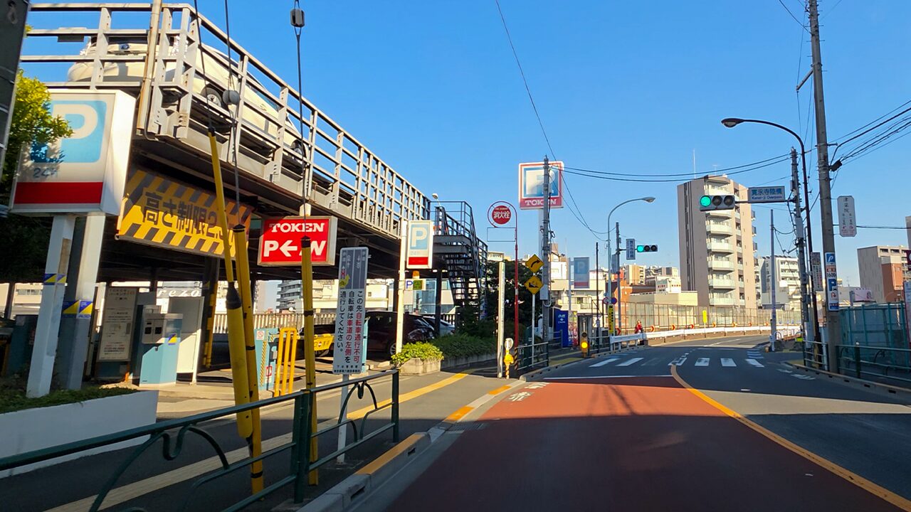 まず、言問い通りを進みながら入口位置を確認します。次に、入口が見えたら早めに減速し、ゲート(発券機)へ進入します。このとき入口付近で慌てないためにも、動画のチャプターで「入口が見えるタイミング」を先に確認しておくと安心です。